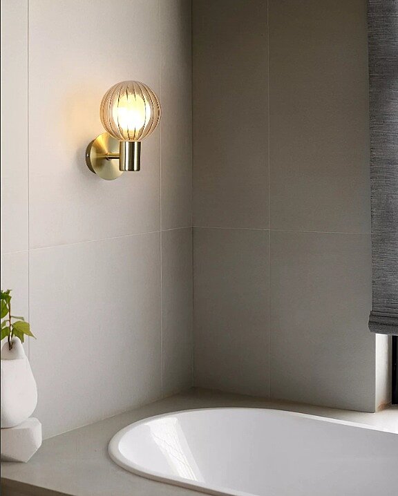 kompatibilní závit(patice) G9Anglické světlo 30506GO Luminsphere pojí klasický i moderní design. Stínidlo z šampaňského skla s jemným žebrováním jemně změkčuje světlo, zatímco teplý mosazný držák dodává tónovou harmonii a rafinovaný vzhled. Díky krytí IP44 bez problémů odolá parnému prostředí koupelny, ačkoli jeho všestranný styl z něj činí vynikající volbu pro použití v celé domácnosti. Vyžaduje 1 x LED žárovku G9 (prodává se samostatně). Rozměry: V 12,4 cm x D 16,2 cm x Š 8 cm.