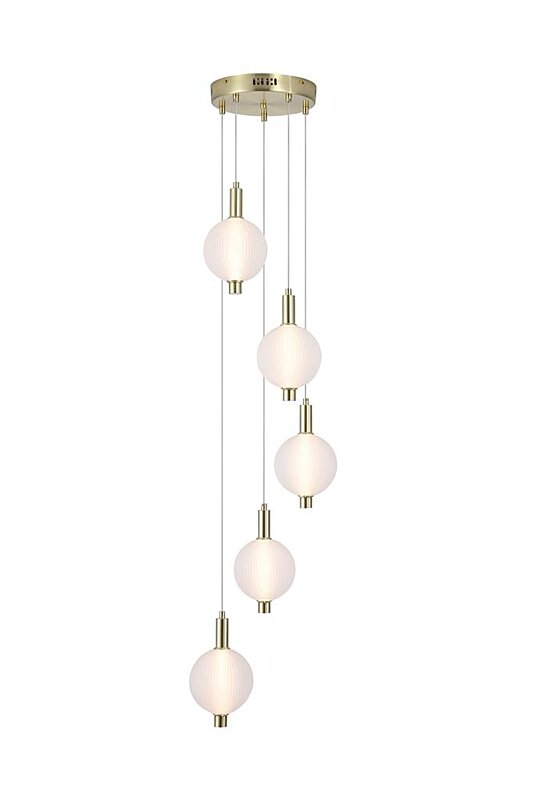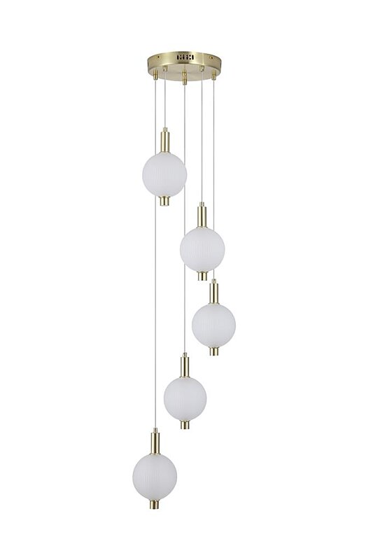 Krásné světlo 69410-5SB od anglického výrobce Searchlight pochází ze série svítidel Luminique. Výšku závěsu lze libovolně zkrátit. Závěsné světlo je vhodné všude tam, kde je potřeba kaskádovitého osvětlení. Všude tam, kde oceníte jemné světlo procházející jemně žebrovaným, skleněným stínidlem, kulatého tvaru. Luxusní design podpoří matně mosazná barva kovu. Kombinujte s osvětlením ve shodné sérii.