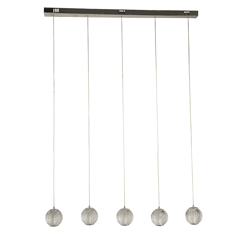 Anglické světlo Allure s pěti stínidly je vyrobené z kovové základny v barvě chromu, stříbrné lesklé a akrylových stínidel s drobným brošeným vzorem. Výšku lustru můžete libovolně zkrátit. Světlo svítí 21W teplou, bílou barvou, 3000K. Světlo lze stmívat. Kombinujte s osvětlením ve shodné sérii.
