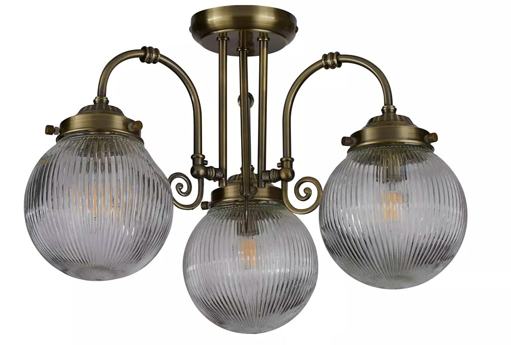 kompatibilní závit(patice) E14Stropní svítidlo Belvue 3Lt, inspirované historickými prvky je plné charakteru, vnáší klasickou eleganci do každého interiéru. Toto krásně vyrobené tříramenné svítidlo 32593-3AB se vyznačuje povrchovou úpravou v antické mosazi s výraznými žebrovanými skleněnými kulovými stínidly, která vytvářejí elegantní rozptyl světla a vizuální přitažlivost. Díky tradiční siluetě je vhodné do jídelen, obývacích pokojů nebo ložnic a je ideální pro historické domy, venkovské interiéry nebo prostory oslavující klasický design. Hodí se také do komerčních prostor, jako jsou rustikální kavárny a restaurace, kde vintage kouzlo umocňuje atmosféru. Díky krytí IP44 lze použít v koupelnách. Vyžaduje 3 žárovky ve tvaru golfového míčku (prodávají se samostatně). Kombinujte s osvětlením ve shodné sérii.