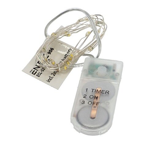 Dekorativní 20LED světelný řetěz ECL-S20WW-T svítí teplou, bílou barvou 3000K. Jemný, stříbrný kabel doplňují drobné LEDky. Skvětlá volba pro vánoční dekorace do oken, věnců, na komody, všude tam, kde nechcete složitě řešit světla do zásuvky. Světelný LED řetěz je dodáván včetně časovače. Máte možnost LED řetěz zapnou, vypnout a nebo zvolit režim časovače. Při přepnutí nna časovač, bude světlo svítit 6hodin a vypnutý bude 18hodin.