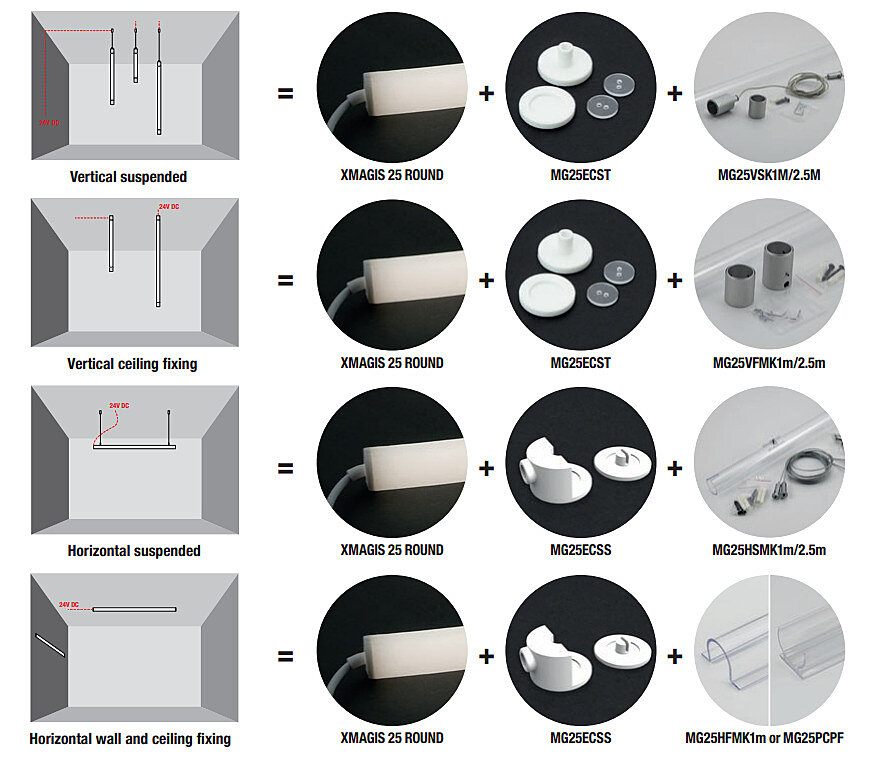 Flexibilní světlo XMAGIS 25 round svítí 336 LEDkami na metr po celém svém obvodu. Délka světla je 5m, světlo lze zkrátit. Tato varianta svítí teplou, bílá až neutrální barvou, 2300K až 4000K, 14,4W na metr, 768lm na metr. Díky krytí IP65 ho lze použít i ve vlhkém prostředí. Díky příslušenství můžete světlo uchopit do stropu, vodorovně zavěsit a nebo spustit ze stropu dolů, Vy zvolíte jakou bude světlo mít podobu. Skvělá světelná vychytávka do moderních a nadčasových interiérů a exteriérů.
