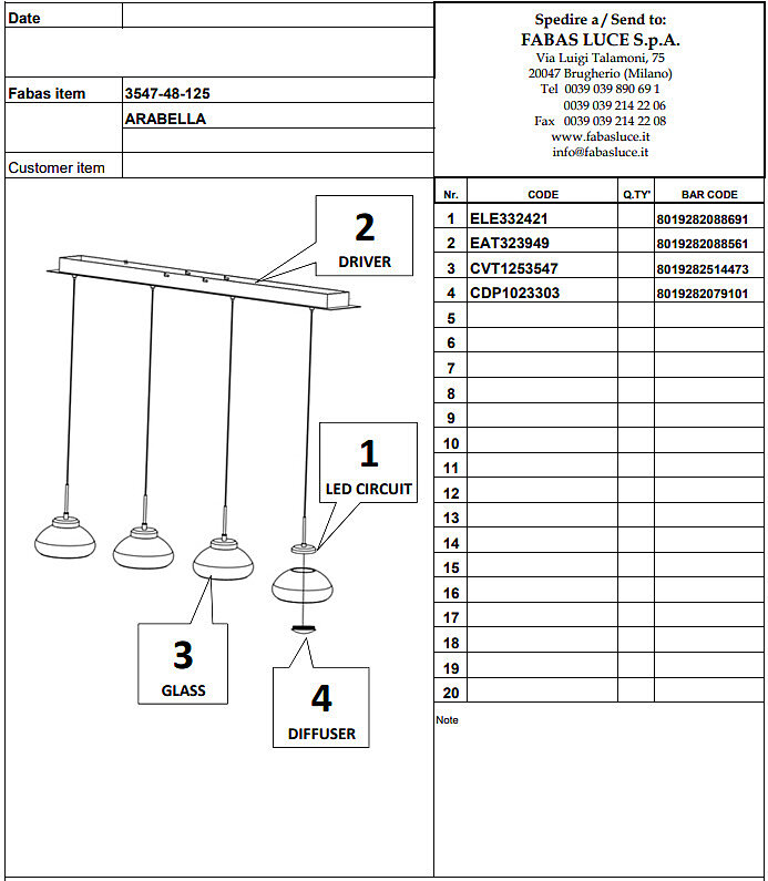 Závěsné světlo Arabella 3547-48-125 je vyrobené z kovu a foukaného skla v jantarové barvě. Integrovaná LEDka svítí 8W teplou, bílou barvou. Italské světlo má čtyři stínidla, celkový příkon je 32W. Světlo lze stmívat, stmívač není součástí. 2m výšku závěsu lze libovolně zkrátit a upravit. Součástí světla je i praktický systém uchycení. Světlo tedy lze svěsit i mimo el.přívod. Kombinujte s osvětlením ve shodné sérii.