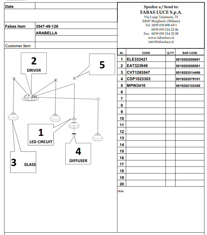 Závěsné světlo Arabella 3547-49-126 je vyrobené z kovu a foukaného skla v kouřové barvě. Integrovaná LEDka svítí 8W teplou, bílou barvou. Italské světlo má čtyři stínidla, celkový příkon je 32W. Světlo lze stmívat, stmívač není součástí. 3,5m výšku závěsu lze libovolně zkrátit a upravit. Součástí světla je i praktický systém uchycení. Světlo tedy lze svěsit i mimo el.přívod. Kombinujte s osvětlením ve shodné sérii.