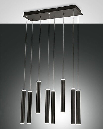 Italské svítidlo pochází z řady PRADO. Lustr se skládá z osmi černých oválných závěsů, které jsou vyrobené z kovu. Integrované LED zdroje svítí teplou bílou barvou o síle 5760 lumenů. Světlo je stmívatelné, ale nepotřebujete k němu zvláštní vypínač. Lustr setmíte pomocí zapínání a vypínání v krátkém intervalu. Po prvním zapnutí svítí na 25%, sepněte vypínač podruhé a svítí polovičním výkonem a pokud spínač sepnete potřetí svítíte na 100% výkonu ( spínáte v krátkém intervalu ). Kombinujte s ostatními svítidly ze shodné sére PRADO.