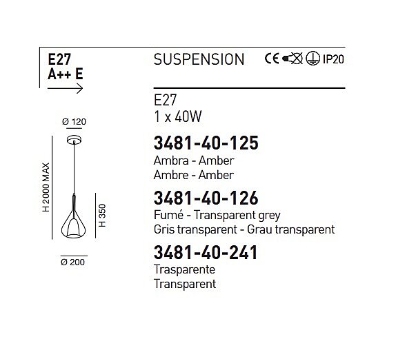 Krásné světlo od italského výrobce Fabas Vás zaujme svým designem. Lustr má bílý kovový rám a borosilikátová sklo v moderní jantarové barvě. Podstavec světla má v průměru 12cm. Výška závěsu je maximálně 2 metry a lze jí libovolně zkrátit. Skleněné stínidlo má v průměru 20cm a je vysoké 35cm. Skvělá volba. Kombinujte s osvětlením v sérii Lila.