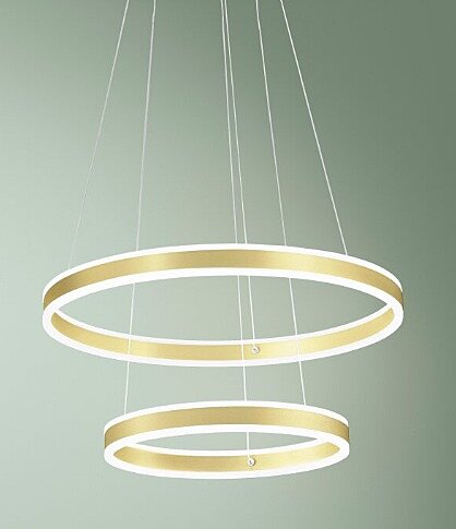 Stmívatelné LED světlo Palau 3743-45-225 svítí příjemnou, teplou barvou, 3000K. Italské světlo je tvořeno dvěmi kruhy, které mají v průměru 40cm a 60cm. Výkonné 108W LEDky lze fázově stmívat. Světlo se vyrábí v elegantní, bílé barvě anebo luxusní, matně zlaté barvě. Výšku závěsu lze dle potřeby zkrátit. Závěs je možné mít ve výšce 40cm až 2metry. Prstence svítí pásem nahoru i dolů a rovnoměrně osvětlí prostor. Kruhy mohou být zavěšené tak jak se Vám líbí, pod sebou a nevo v náklonu obou nebo jednoho z kruhů. Skvělá volba moderního a nadčasového světla.