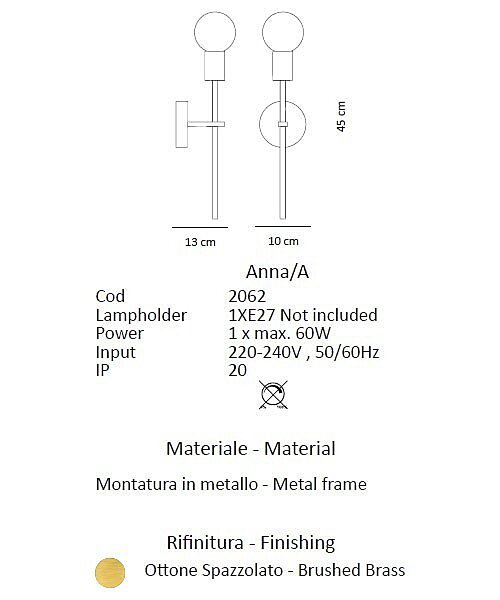 kompatibilní závit(patice) E27Italské světlo Anna/A 2061 je vyrobené v matné, zlaté barvě. Krásné světlo dotvoříte výběrem žárovky.