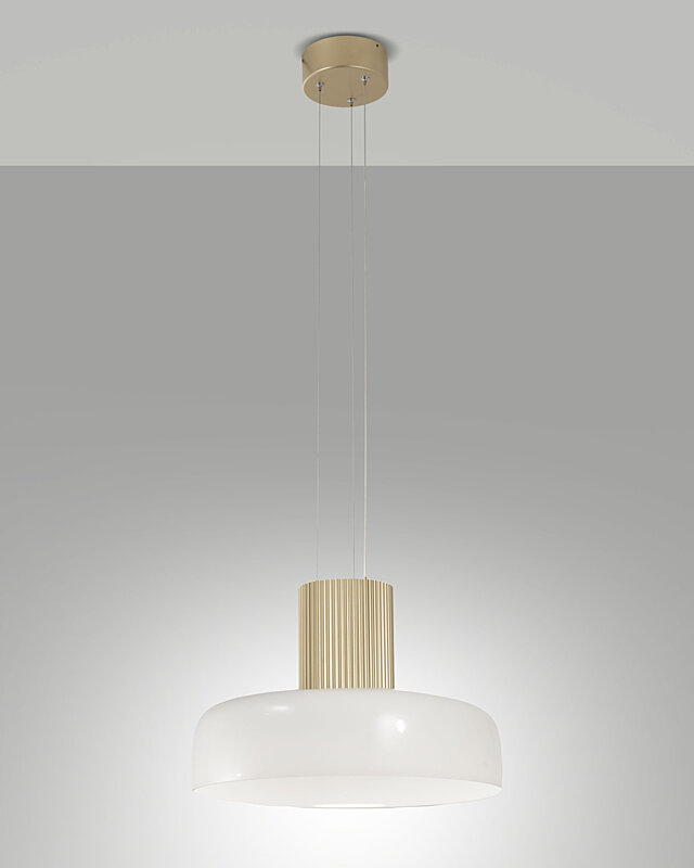 Italské závěsné LED svítidlo Lunar 3800-40-102 s vysoce kvalitním sklem v bílém provedení a atraktivním zlatým dekorem. Světlo má 3stupňové stmívání s paměťovou funkcí. Na výběr máte CCT 2700K, 3000K, 4000K, přepínač najdete na u LED čipu, při instalaci svítidla si vyberete barvu, která Vám bude vyhovovat. Lustr je možné stmívat nástěným vypínačem, nepotřebujete žádnou úpravu elektroinstalace. Přepínáním volíte intenzitu světla 100%, 40%, 10%. Světlo má paměť, to znamená, že si pamatuje poslední nastavenou úroveň svícení. Výšku závěsu lze libovolně zkrátit. Kombinujte s osvětlením ve shodné sérii.