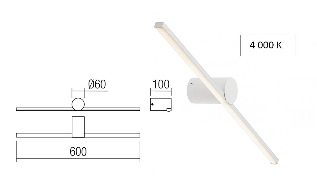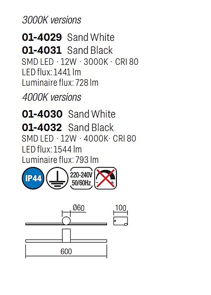 Nástěnné vnitřní svítidlo Row 01-4034 je chráněné proti vlhkosti, má krytí IP44. Tato varianta svítí 4000K. Světlo je vybavené SMD LED diodami 12W. Konstrukce je vyrobená z hliníku a matně bíle lakovaného kovu, difuzor z opálového PVC.