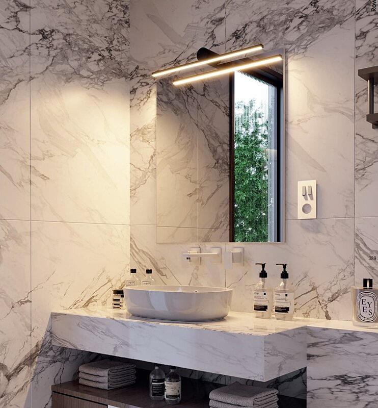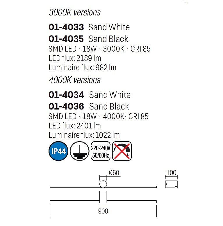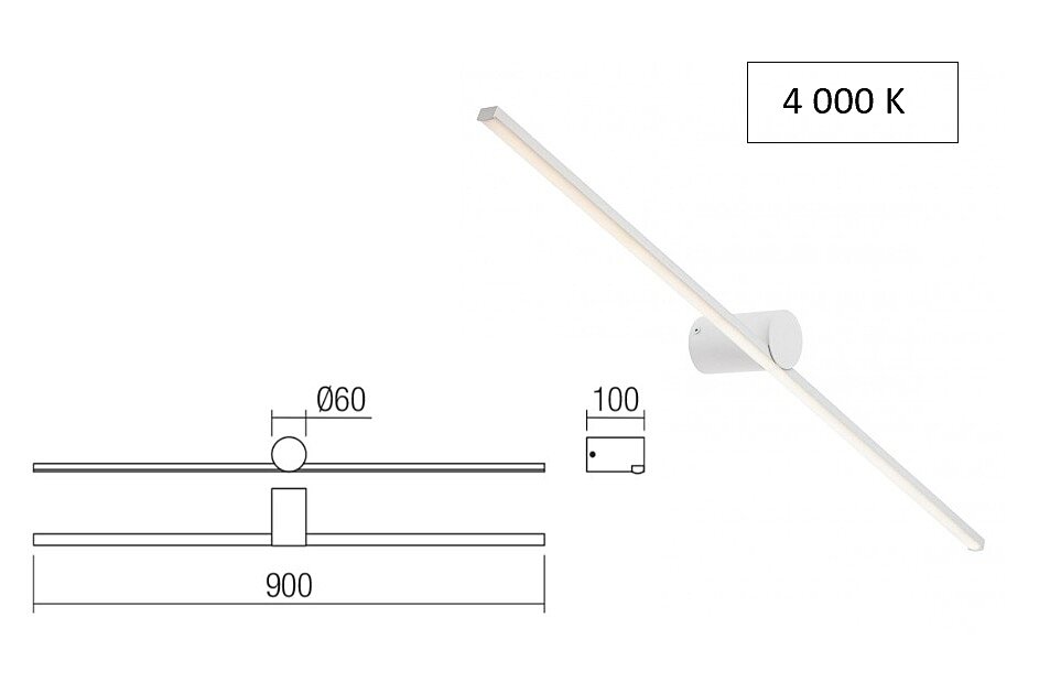 Nástěnné vnitřní svítidlo Row je chráněné proti vlhkosti, má krytí IP44. Tato varianta svítí 4000K. Světlo je vybavené SMD LED diodami 18W. Konstrukce je vyrobená z hliníku a matně bíle lakovaného kovu, difuzor z opálového PVC.