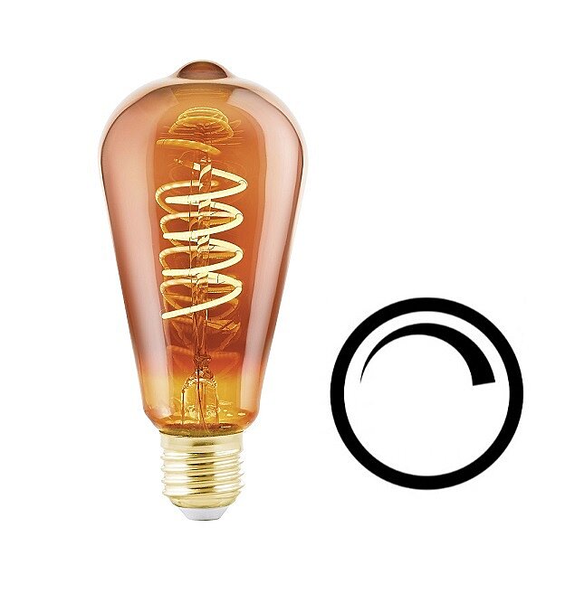 Stmívatelná vintage LED žárovka s paticí E27 svítí podobně jako 3W klasická žárovka, ale využívá k tomu příkon 4W.