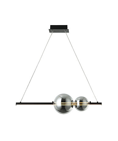 Moderní LEDkový lustr je vyroben z kovu a skla. Skleněné koule mají v průměru 15cm a 10cm. Výšku závěsu 2,1m lze libovolně zkrátit. Krásné světlo od řeckého výrobce se vyrábí v černé matné barvě v kombinaci s kouřovým sklem a nebo pod kodem 22108 v matném bílém provedení v kombinaci s bílým sklem. Světlo je možné triakově stmívat. Svítí teplou, bílou barvou, 3000K.
