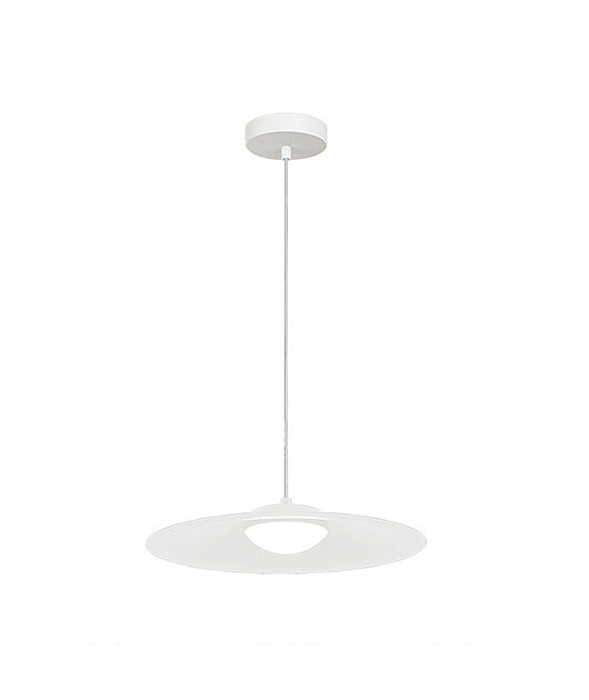 Moderní LEDkový lustr je vyroben z kovu a plastu. Stínidlo má průměr 35cm. Výšku závěsu 2m lze libovolně zkrátit. Krásné světlo 22129 od řeckého výrobce se vyrábí v matné, bílé barvě. V černém, matném provedení pod kodem 22130. Svítí teplou, bílou barvou, 3000K.