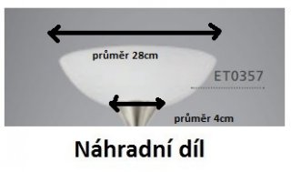 Plastový, náhradní díl je vyroben pro závit E27. Vnitřní průměr má 4cm a vnejší 28cm. Vysoký je 8cm.