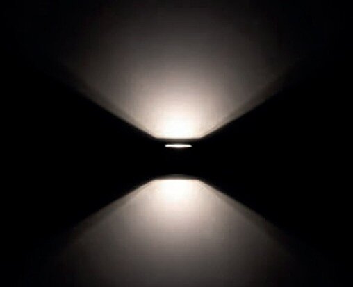 Exteriérové nástěnné LED svítidlo vybaveno dvěmi COB LED EPISTAR diodami o výkonu 2x6W, které vytváří nepřímé osvětlení. Konstrukce je vyrobena z tlakově litého hliníku, elektrostaticky lakovaná do tmavě šedé barvy. Difuzor je vyroben z čirého tvrzeného skla s disperzí 120°. Hodnota CRI je 82, hodnota stupně krytí je IP54. Svítidlo není možno stmívat.