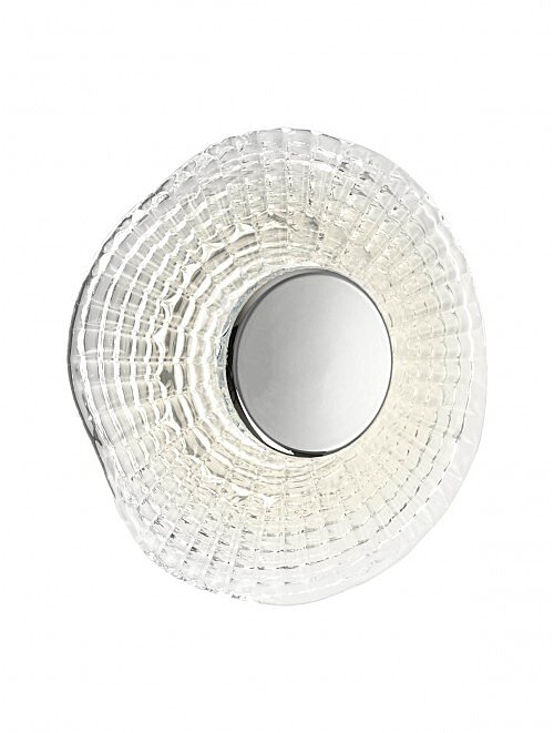 Nástěnné světlo Reef 05-968 je vyrobené z kovové konstrukce lakované v matném, chromovém provedení s transparentnímručně opracovaným, skleněným stínidlem. Vzor na skleněném stínidle odráží světlo do všech stran.