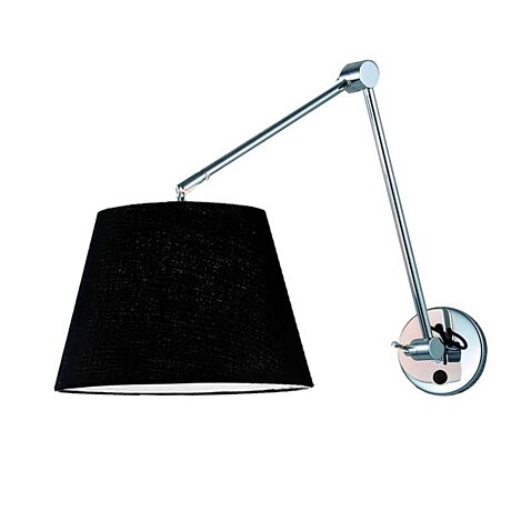 kompatibilní závit(patice) E27Nástěnné svítidlo vhodné do interiéru vybaveno paticí E27 o maximálním výkonu 60W. Konstrukce je vyrobena z kovu v povrchové úpravě v saténovém niklu s černým přepínačem pro ovládání osvětlení. Stínidlo je vyrobeno z černé tkaniny s průměrem 20 centimetrů. Výška stínidla 14,5cm. Se svítidlem je možno vertikálně posouvat. Hodnota stupně krytí je IP20. Světelný zdroj není součástí balení.