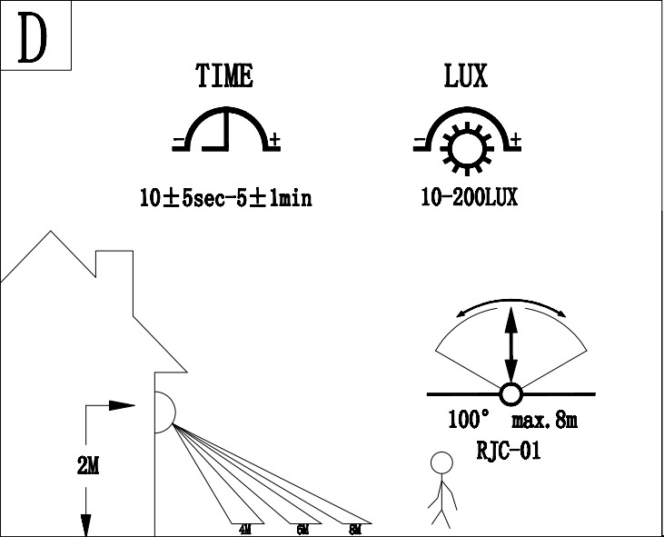 Svítidlo má senzor, který reaguje na pohyb v úhlu 90° do vzdálenosti 8m. Po zachycení pohybu vám svítidlo bude svítít po dobu od 10s do 4 minut.