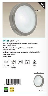 Nástěnné venkovní svítidlo řady Vento je vyrobeno z kvalitní oceli a skla .Toto svítidlo má kruhový tvar a je rámované právě ocelí. U svítidla určitě oceníte jeho nízkou spotřebu,protože využívá LED zdroje teplé bílé barvy, které jsou jeho součástí. V souvisejícím zboží najdete svbítidla ze stejné řady.