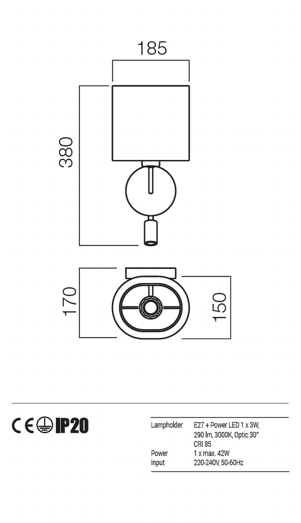 Osazeno paticí | 1x E27 42W; 1x 3W |