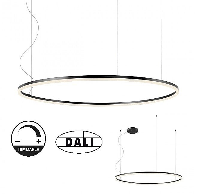 Interiérové závěsné LED svítidlo vybaveno 576 SMD LED 2835 diodami o výkonu 0,14W. Konstrukce je vyrobena z kovu a hliníku, lakována do broušené černé barvy. Difuzor je vyroben z bílého saténového akrylu. Hodnota CRI je 80, hodnota stupně krytí je IP20. Svítidlo je stmívatelné nástěnnými vypínači protokolem DALI. K napájecímu kabelu je nutné mít i samostatný ovládací dvoužilový kabel.