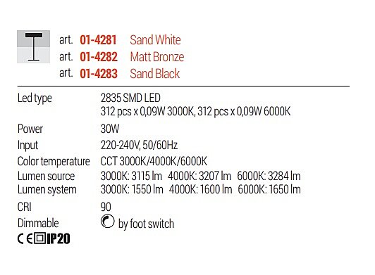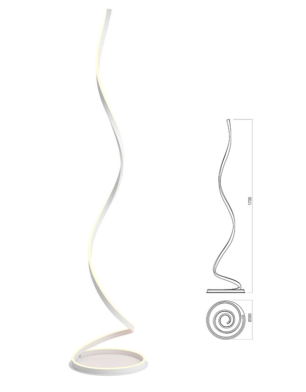Krásná lampa Scroll je vyrobena z kovu v elegantní, matné bílé barvě. Jemné stočení těla lampy zajistí u každého úhlu jiný design lampy. Stojací lampu 01-4281 lze stmívat vypínačem umístěným na kabelu. Lampu lze nejen stmívat, ale i měnit barvu CCT 3000K, teplou bílou, 4000K denní bílou a 6000K studenou bílou. Teplotu barev změníte rychlým zapnutím a vyplutím vypínače. Stmívání světla docílíte zapnutím a držením tlačítka. Lampa má funkci paměti světla, pokud světlo vypnete po 7 vteřinách, pamatuje di poslední nastavení. Skvělá volba.
