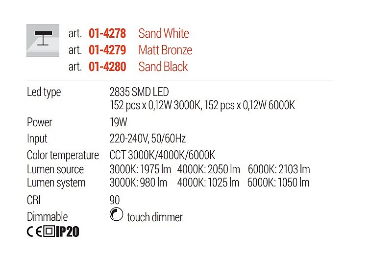 | Barva světla | teplá bílá; denní bílá; studená bílá |