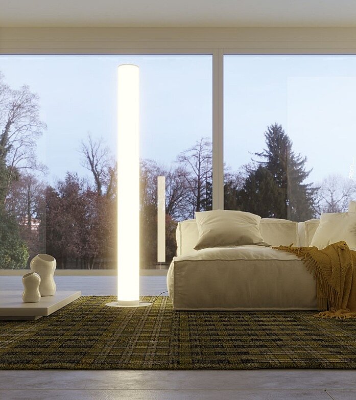 Elegantní, interiérová lampa Pilon 01-3012 je vyrobená z kovové konstukce a akrylátového difuzoru. Lampa je vysoká 1,8m a tubus má v průměru 16cm. Stojací lampa je vybavena SMD LED diodami, 860kusů 0,06W LED diod svítí 57W. Lampu lze plynule stmívat nožním stmívačem. Nožní stmívač je umístěný na kabelu, který je 2,5m dlouhý.