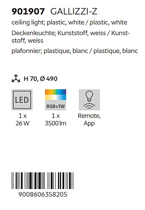 Chytré světlo Gallizzi-Z 901907 se ovládá pomocí bezplatné aplikace AwoX HomeControl nebo si lze dokoupit dálkový ovladač connect.z. Na výběr máte širokou nabídku možností svícení, od teplé bílé, neutrální bílé po studené bílé světlo a také další barvy RGB pro atmosférické akcenty. Světlo lze stmívat, můžete i simulovat přítomnost, v nabídce je i časovač.