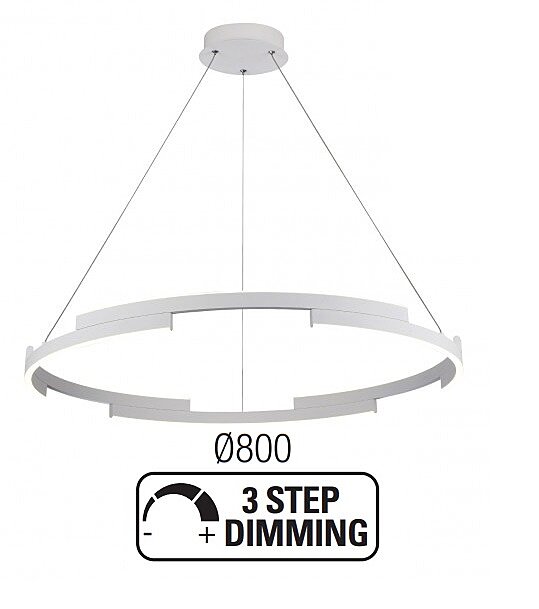 Designové světlo Castle 01-3174 je vyrobené z hliníku v matné, bílé barvě.Teplota chromatičnosti činí 3000K, teplá bílá. Výhodou tohoto svítidla je funkce krokového stmívání. Světlo stmíváte přepínáním vypínače ve třech krocích, není potřeba žádná úprava elektroinstalace. Výšku závěsu lze libovolně zkrátit.