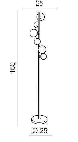 Stojací lampa, ke které je potřeba dokoupit šest žárovek s paticí G9 o maximálním příkonu 25W. Konstrukce je vyrobena z kovu, lakována do zlaté barvy. Difuzor je vyroben z opálového skla. Hodnota stupně krytí je IP20.