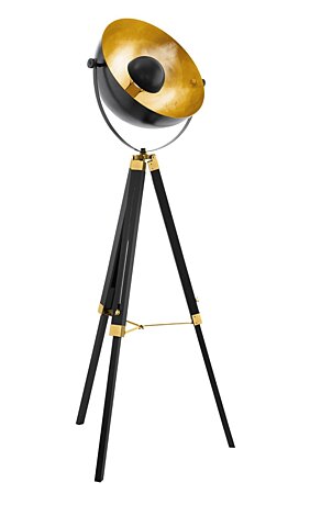 Stojací lampa měří 1,64m. Pro svou stabilitu je lampa vybavena třemi nožičkami, které jsou vyrobeny ze dřeva v černé barvě. Její velkou výhodou je nastavitelné stínítko, takže si můžete zvolit úhel světla podle Vašich představ. Ve středu stínítka je patice na žárovku E27. Aby stojací lampa neoslňovala, tak je žárovka zakrytá černým středem. Světlo se tak leskne ve zlatém půlkruhovém stínítku a tvoří tak příjemné osvětlení.
