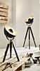 Stojací lampa měří 73,5cm. Pro svou stabilitu je lampa vybavena třemi nožičkami, které jsou vyrobeny ze dřeva v černé barvě. Její velkou výhodou je nastavitelné stínítko, takže si můžete zvolit úhel světla podle Vašich představ. Ve středu stínítka je patice na žárovku E27. Aby stojací lampa neoslňovala, tak je žárovka zakrytá černým středem. Světlo se tak leskne ve zlatém půlkruhovém stínítku a tvoří tak příjemné osvětlení.