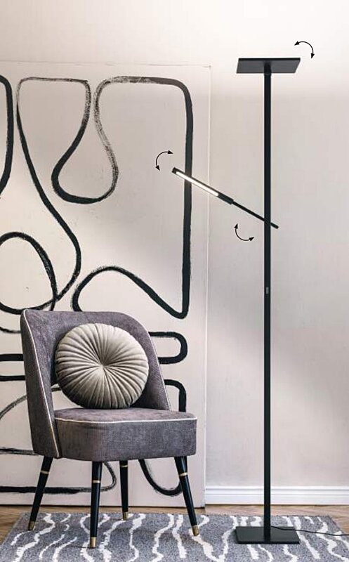 Stojací LED lampa pochází z dílny italského výrobce Fabas. Úhel lampy si můžete nastavit, podle své libosti, díky nastavitelným ramenům. Horní světlo lampy svítí 3000 lumeny, boční světlo svítí 500 lumeny. Tato světla si můžete díky dotykovým stmívačům setmít. V souvisejícím zboží najdete lampy ze shodné série IDEAL.