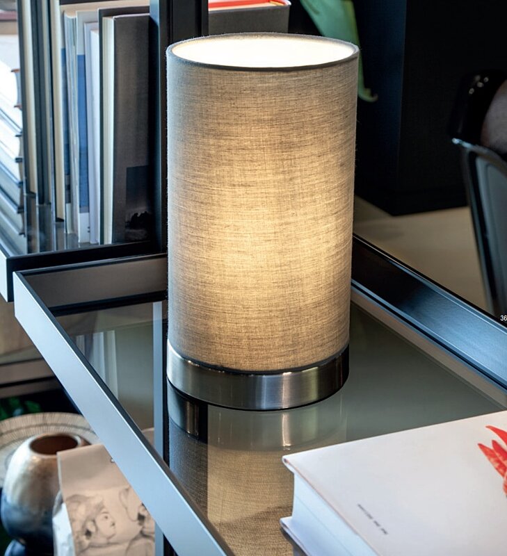kompatibilní závit(patice) E14Stolní lampička je určena pro použití do interiéru. Podstavec má strukturu saténově niklového kovu. Stínidlo má nichel opaco barvu, béžovou. Látkové stínidlo je na bílém PVC podkladu. Délka kabelu je 1,5m a vypínač je umístěný 30cm od lampičky.