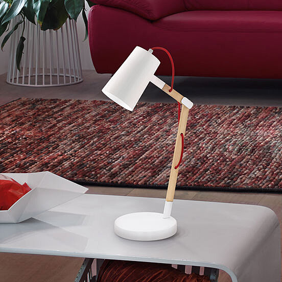 kompatibilní závit(patice) E27Stolní lampička z řady TORONA se vyrábí z oceli a dřeva v bílé barvě. Lampička má nakláněcí rameno a je vhodným doplňkem na stůl například u vás doma, ve firmě nebo v kanceláři.