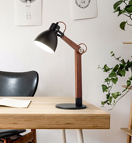 Stolní lampička Sveva pochází z dílny italského výrobce Fabas. Je vyrobena z přírodních materiálů. Tělo lampičky je totiž zhotoveno z černého ořešáku. Skvěle tak ladí ke stínítku a podstavci z černého kovu. Do lampičky patří žárovka s paticí E27 o max. příkonu 40W.