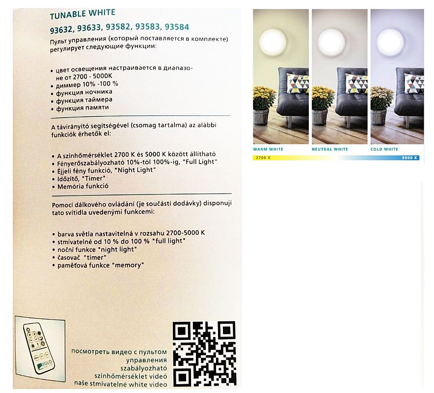 1. barvu světla od teplé bílé (2700K) až po studenou bílou (5000K).
