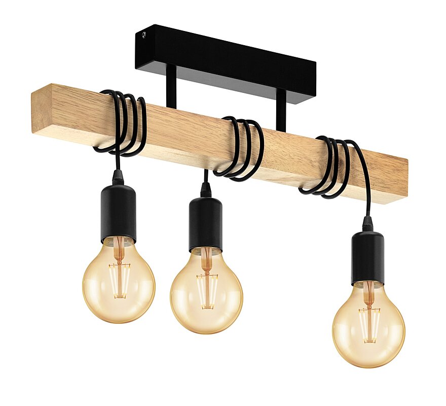 Stropní svítidlo pochází z řady TOWNSHEND. Svítidlo tvoří dřevěný trám, na kterém jsou přidělány černé kabely s třemi paticemi E27. Svítidlo je určeno pro žárovky s maximálním příkonem 60W. Toto svítidlo je tvořeno ve starém duchu vintage, proto se do něj nejvíce hodí vintage žárovky .