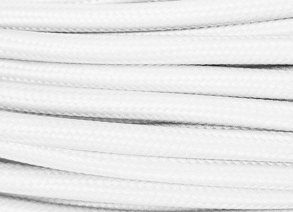 Textilní kabel v bílém provedení, ozvláštní Váš interier. Kombinujte s rozetami na připevnění ke stropu a objímkami. Kabel je určenpro použití v suchých prostorách pro připojení přenosných elektrospotřebičů při velmi nízkém mechanickém zatížení, jako jsou rozhlasová a osvětlovací zařízení, avšak nikoli pro topná zařízení.