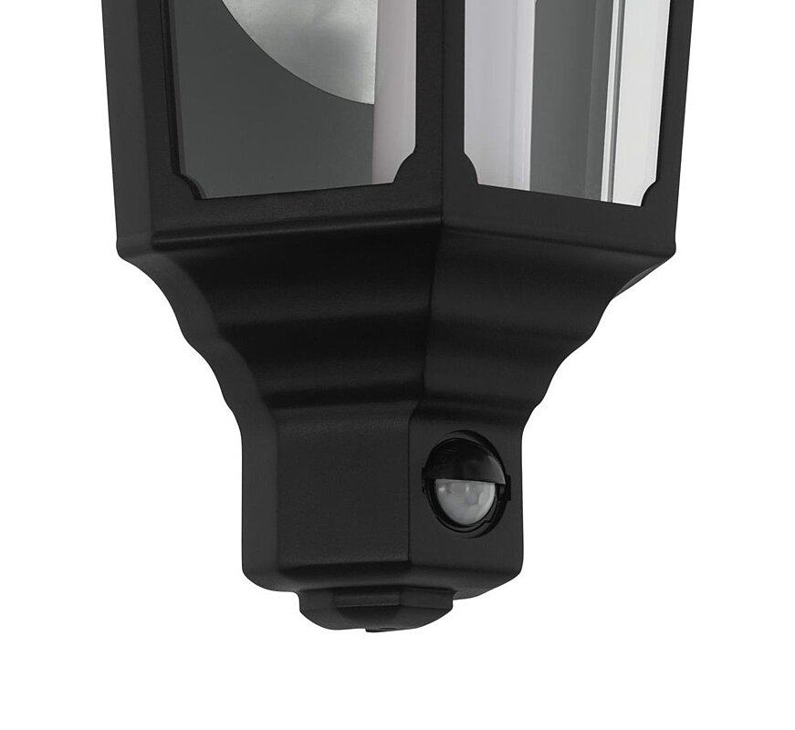 Nástěnné svítidlo z řady MANERBIO vybaveno paticí E27 o maximálním výkonu 60W a senzorem soumraku i pohybu. Senzor soumraku je nastavitelný od 50-2000 luxů a pohybový je na vzdálenost 7 metrů se zorným úhlem 110°. Světelný zdroj není součástí balení. Svítidlo je vhodné pro venkovní osvětlení. Konstrukce je vyrobena z hliníkové slitiny, lakována do černé barvy. Difuzor je vyroben z čirého skla. Svítidlo má hodnotu stupně krytí IP44 a váhu 1,75kg.