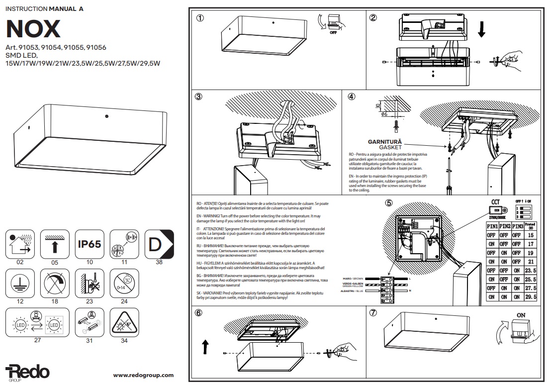 Stropní světlo Nox 91054 je určeno pro instalaci do venkovního prostředí. Základna je vyrobená z kovu odlitého pod tlakem s ochranou proti korozi. Základna je elektrostaticky lakovaná v matné, tmavěšedé barvě. Světlo svítí teplou barvou, na výběr máte 2700K nebo 3000K. Barvu si zvolíte při instalaci svítidla, přepínačem zvolíte co Vám bude vyhovovat.