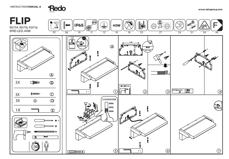 Toto světlo má přepínač barvy umístěný na základně, před instalací svítidla si tedy můžete určit jakou barvou světla budete chtít svítit. Na výběr máte 3000K, teplou bílou barvou 4000K, denní bílou barvou nebo 5000K, studenou bílou barvou. Venkovní světlo Flip je určené pro venkovní instalaci na fasády domů. Stínidlo je náklopné, lze si tedy určit sklon svícení dle potřeby. Kombinujte s osvětlením ve shodné sérii Flip.