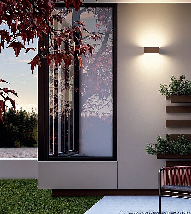 Nástěnné LED světlo svítí příjemnou, teplou barvou, 3000K nahoru i dolů. Je určeno pro instalaci do exteriéru na stěnu budov, podchodů a podobně. Všude tam, kde je potřeba světlo, které vidíte, ale neoslňuje Vás. Základna je vyrobena z elektrostaticky lamovaného kovu v barvě corten, rzi. Stínidla jsou ze saténově skleněná.