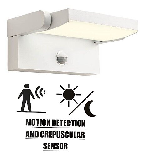 Venkovní světlo Flip s čidlem je vyrobené z kovu v barvě matné bílé. Stinidlo je náklopné, lze si tedy nastavit sklon svícení světla dle potřeby, Kombinujte s osvětlením ve shodné sérii.