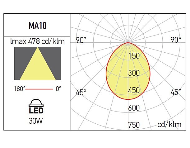 Vestavná 30W svítidla Xmaxi s krytím IP44 jsou dodávané s LEDdriverem. Světlo svítí 4000K, denní, bílou barvou. Bílý rám jr z tlakově litého hliníku, elektrostaticky natřený bílou barvou. Pouzdro s chladičem z tlakově litého hliníku, natřené černou barvou. Bílý reflektor z reflexní plastové fólie. Difuzor z opálového PMMA. Konektor „plug-in“ mezi svítidlem a driverem. Napájení: dva vodiče 0,75 mm² na vstupu driveru, každý s lineárním konektorem WAGO.