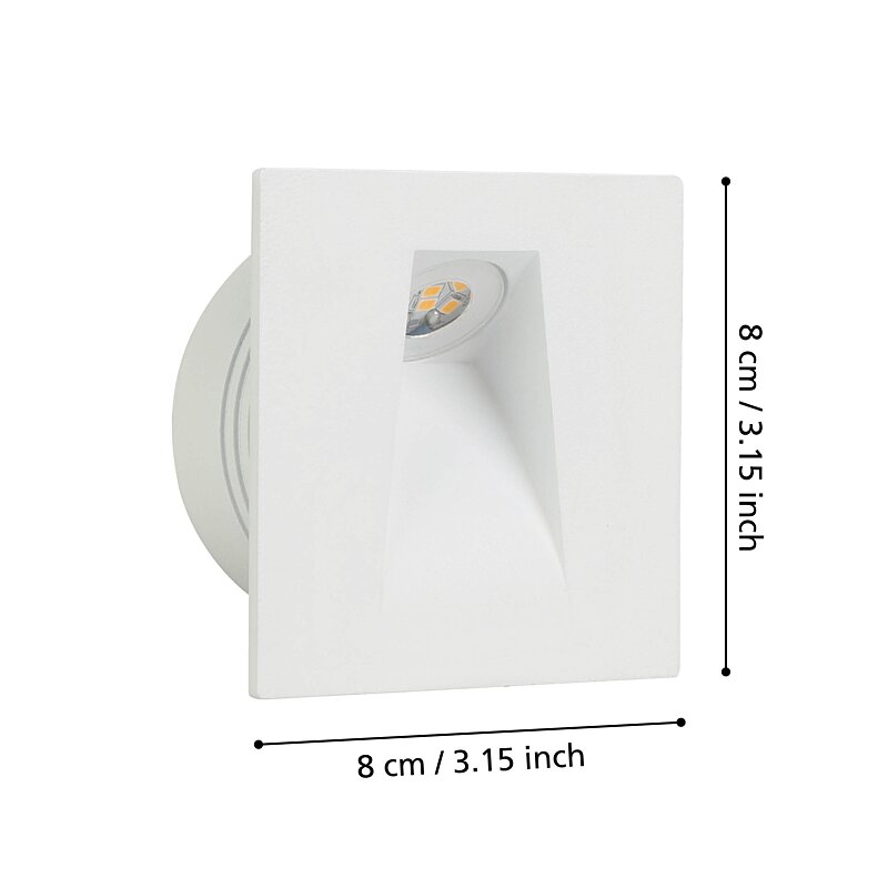 Zapuštěné LED schodišťové svítidlo MECINOS 99643 o rozměrech 80 mm je vyrobeno z bíle lakovaného kovu. Integrované LED diody poskytují příjemné teplé bílé světlo. Světlo má zapuštěnou hloubku 55 mm a vejde se do výřezu o průměru 68 mm. Elegantní design tohoto zapuštěného bodového svítidla se bez problémů začlení do vašeho schodiště a nabízí atraktivní nepřímé osvětlení.