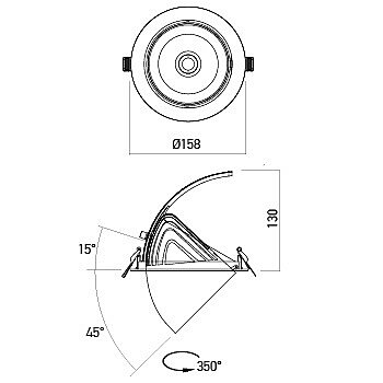 Zápustné interiérové LED svítidlo z řady XDOWN vybaveno COB BRIDGELUX diodou o výkonu 33W. Konstrukce je vyrobena z tlakově litého hliníku, elektrostaticky lakována do matné bílé barvy. Systém regulace polohy je vyroben z ocelového plechu, elektrostaticky lakovaného do černé barvy. Umožňuje otáčení 350° kolem svislé osy a 60° kolem vodorovné. Optický systém je vyroben z vysoce lesklého fazetovaného polykarbonátu. Svítidlo je proto vhodné pro obecné nebo akcentové osvětlení v hotelech, restauracích, kinech, muzeích a jiných výstavních prostorách, komerčních prostorách a obytných oblastech. Hodnota stupně krytí je IP20, váha 0,88kg.