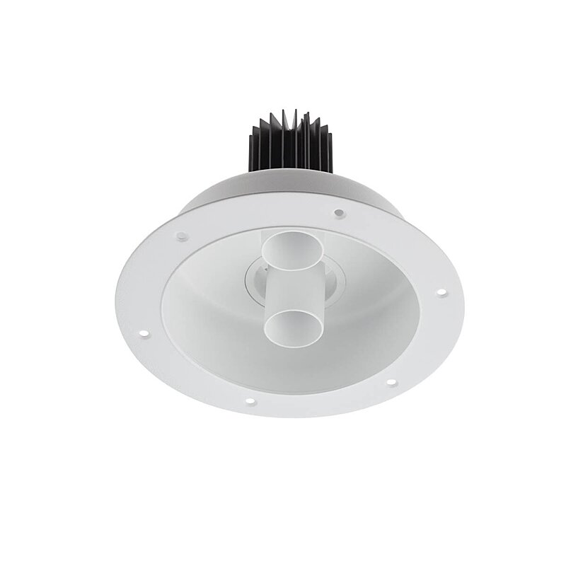 Zápustné interiérové LED svítidlo z řady XDRILL vybaveno dvěmi SMD 5050 BRIDGELUX diodami o výkonu 2x9W. Konstrukce je vyrobena z hliníku, elektrostaticky lakovanána do matné bílé barvy. Reflektor je vyroben z polykarbonátu se stříbrem, difuzor z průhledného polykarbonátu s hodnotou UGR<10. S reflektorem je možno otáčet o 355° a naklápět do stran pod úhlem 65°. Dekorativní kroužek je vyroben z hliníku. Montáž se provádí vyříznutím otvoru, prohloubením sádrokartonu podle konstrukce svítidla, přišroubováním dvěma vybranými otvory a následném zasádrování konstrukce. Svítidlo je vhodné pro obecné nebo akcentní osvětlení komerčních prostor, muzeí a jiných výstavních prostor, obytných a rekreačních prostor. Domácí osvětlení. Hodnota CRI je 90, váha 0,81kg.